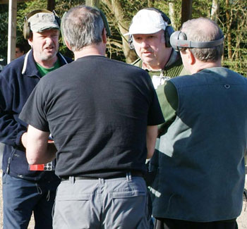 Consultation before the start: L-R Kev Spread, Kim (back to